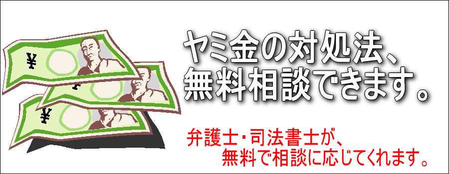 ヤミ金は違法の金融詐欺団体ですので、司法書士事務所・弁護士事務所に相談するのが得策です。
